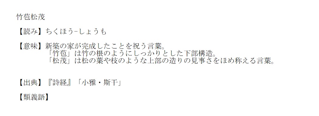 ちくほう-しょうも | 新築完成を祝う言葉 | 解説 |