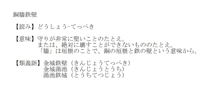 どうしょう-てっぺき | 守りが非常に堅いこと | 解説 |