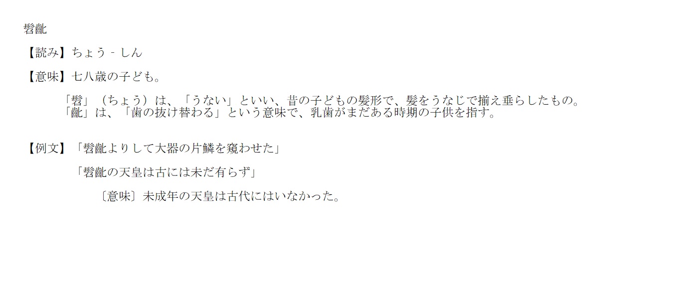 ちょうしん | 七八歳の子供。歯が抜け替わる頃の子供 | 解説 |