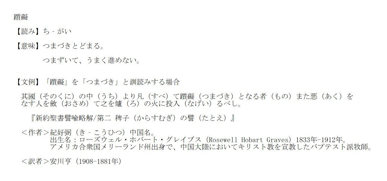 ちがい | つまづきとどまる。つまずいて、うまく進めない。 | 解説 |