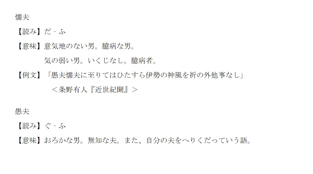 だふ | 意気地のない男。気の弱い男。臆病者 | 解説 |