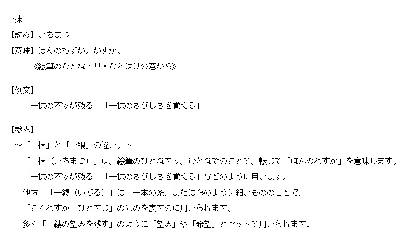 一抹 | ほんのわずか。かすか | 解説 |