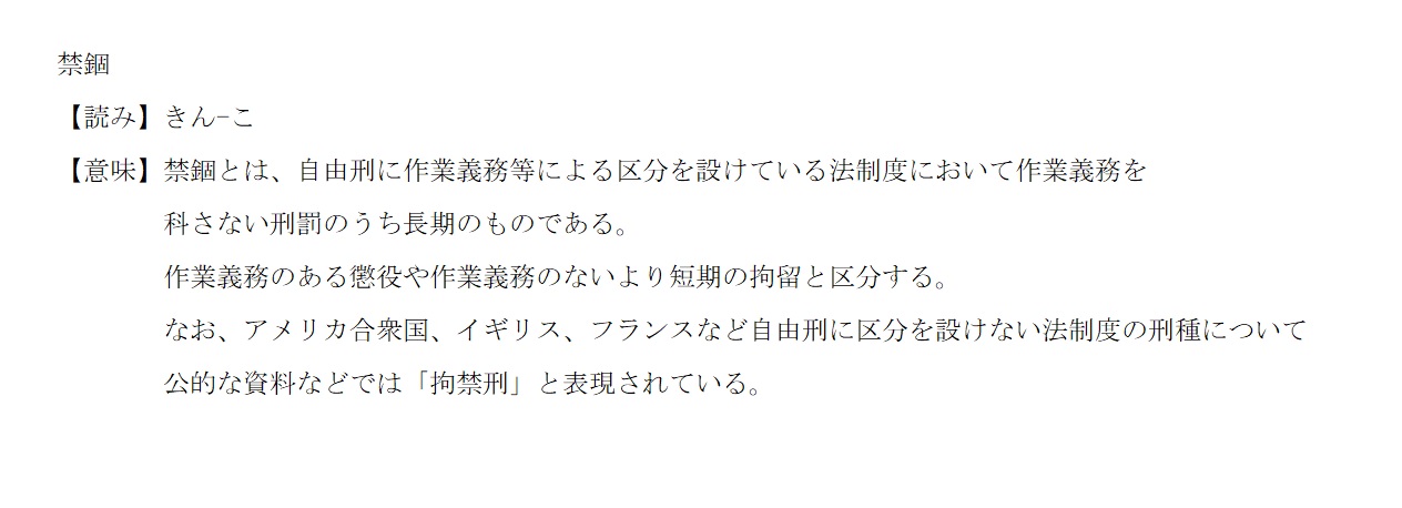 禁錮 | 作業義務を科さない長期刑罰 | 解説 |