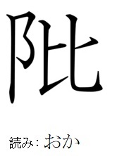 〇岡 ・・・ 原文は「阝+比」の漢字だが、辞書にないので画像で示します。意味はおか。岡と同じ。