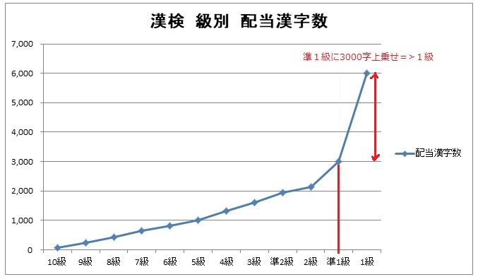 何故なら、準1級までの対象漢字数が約3000字なのに、1級は、なんと、その2倍の6000字なのだ。