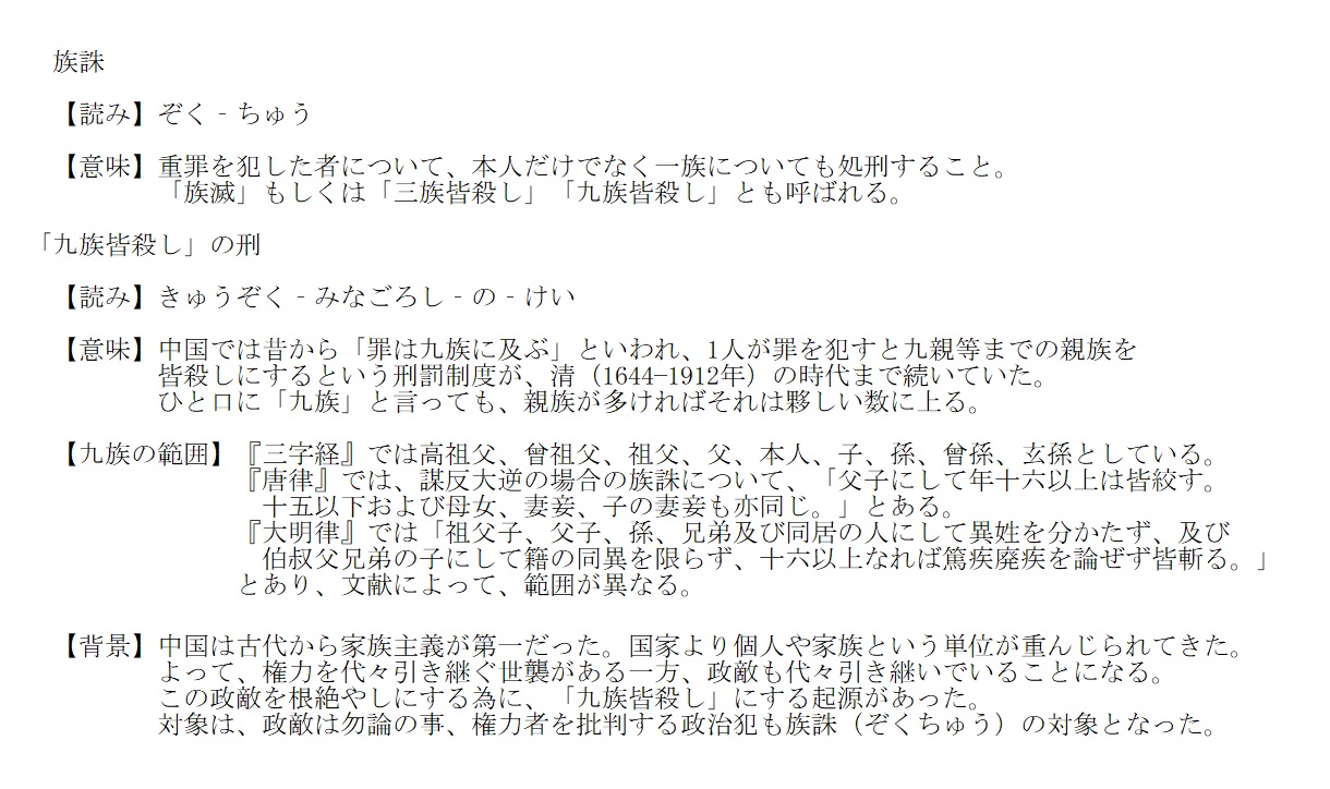 だから、「九族皆殺し」なんて残酷な刑罰が生まれたのだから。(怒)