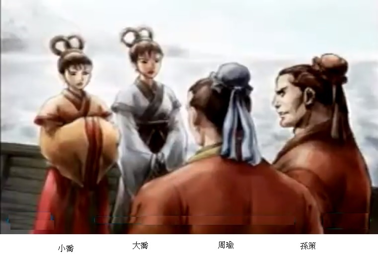 孫策と周瑜は、姉妹を助ける風を装って小舟に