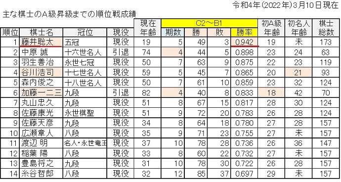 よって、聡太君の目標とすべきは、A級まで史上最高勝率で上がることだったんです。