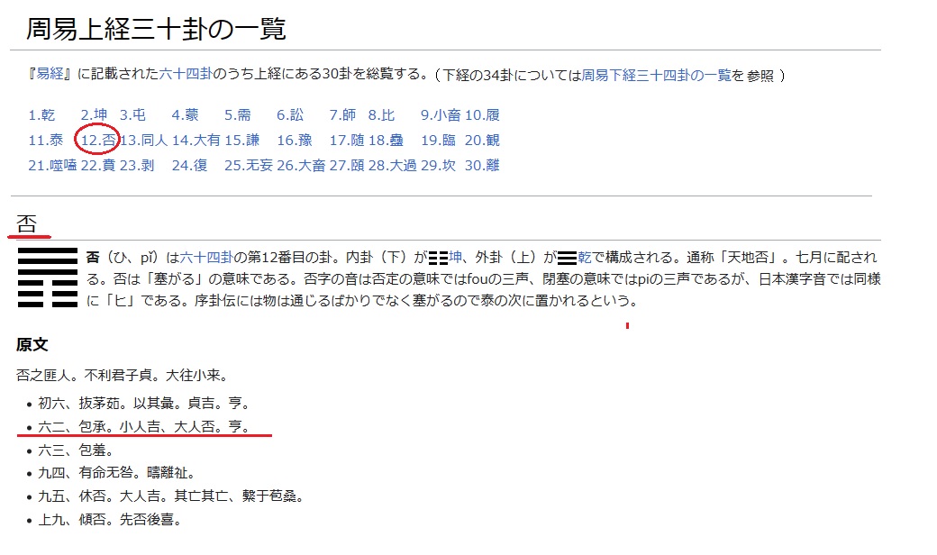 【出典】 『易経(周易)』 六十四卦の第12番目の卦。通称:「天地否」